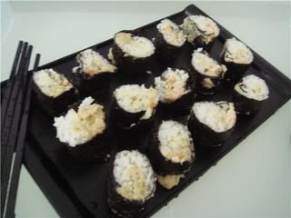 Tried my first attempt at making sushi...turns out quite ugly and yucky. But dear says its nice. Hehe..hope my next attempt is much much better.